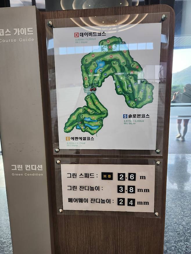 예전에 방문했을 때 좋은 인상과 함께 길고 만만치 않던 골프장으로 기억했는데 여전히 좋았습니다. 당시, 회장님이 절실한 기독교라서 성당에서 볼 수 있는 색상 유리가 여기저기 장식되었던 걸로 기억합니다. 주인은 바뀌었다고 하지만 코스 이름은 여전히 에벤에젤, 데이비드, 솔로몬이네요. 관리가 잘 된 넓은 페어웨이로 시원하게 티샷을 날리고 싶으면 아주 좋은 골프장으로 추천합니다.