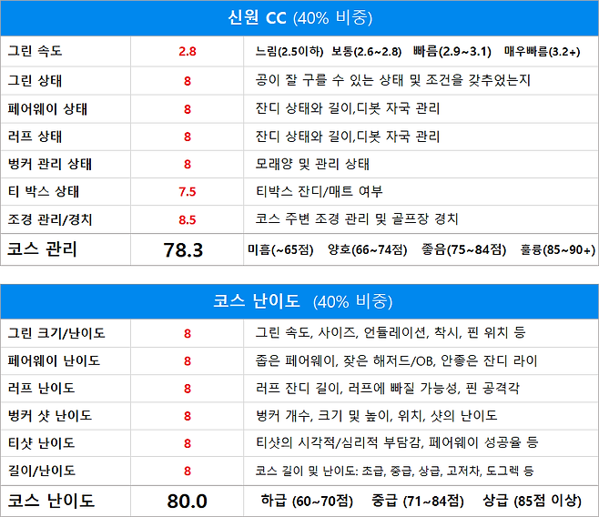 - 코스: 신원 CC 에벤에젤/데이비드 코스