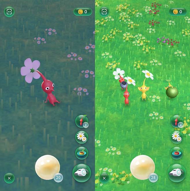 플레이를 위해 복잡한 룰을 숙지할 필요도 없다는 점 역시 매력적이었다. 복잡한 세팅은 게임을 처음 플레이하는 ‘뉴비’에게는 진입 장벽이 된다. 피크민 블룸은 캐릭터 주변에서 빛나고 있는 꽃을 터치해 아이템을 얻거나, 모종을 심어 피크민을 탄생시키고, 가끔 한 번씩 접속해서 이들이 모아 온 정수를 채집하기만 하면 된다. 게임 관련 사전 지식이 전무해도 누구나 즐길 수 있다.
