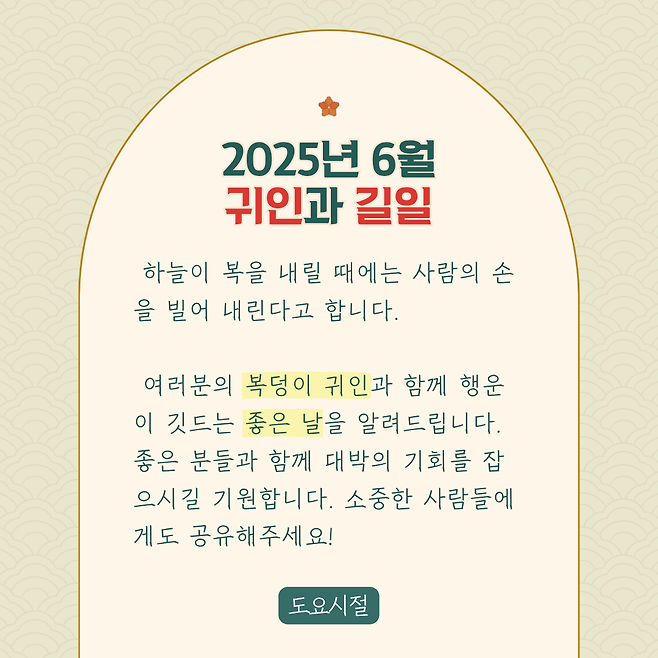 2025년 6월 함께하면 대박나는 귀인과 길일!