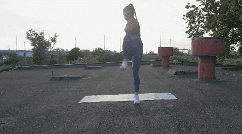 바닥에 서서 준비하세요. 오른쪽 다리를 뒤로 뻗으면서 무릎을 구부려 런지 자세를 만듭니다. 오른쪽 다리를 원래 위치로 가져오면서 공중으로 들어 올리며 무릎을 가슴 방향으로 끌어옵니다. 이 동작을 반복한 후, 다리 위치를 바꿔서 운동합니다.