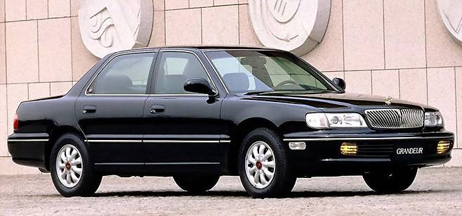 뉴그랜저로 불린 2세대 그랜저는 1992년 9월 출시됐다. 이번에도 미쓰비시와 함께 개발했다. 1세대와 달리 각지지 않고 부드러운 유선형 디자인이 특징. 국내 최초로 전자제어 서스펜션이 적용됐고, 뒷좌석 냉장고, 뒷좌석 오디오 컨트롤러 등이 탑재됐다. 차체 길이는 5m에 육박한 4980mm에 이르러 당시 국내에서 가장 큰 차체를 자랑했다. 국내에서 16만 4927대가 팔리며 큰 인기를 끌었다.