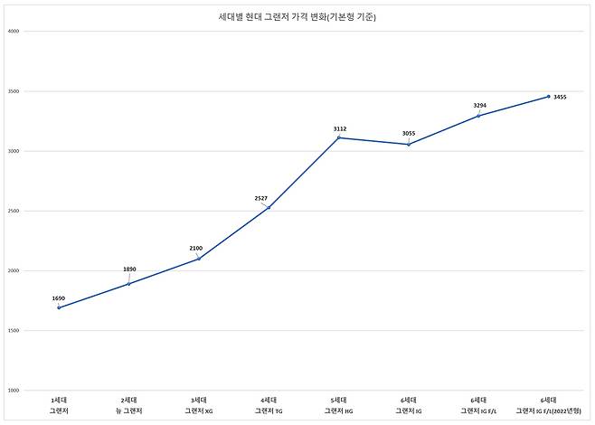 대대적인 변화를 거친 만큼 가격도 상당 부분 오를 것이란 예측이 나오고 있다. 쏘나타의 대안형 세단이 아닌 현대차의 최상급 세단 역할을 하기 위함이다. 그런 현대 그랜저의 초창기 모델부터 현 세대까지 차량 가격이 어떻게 변했는지 정리했다.