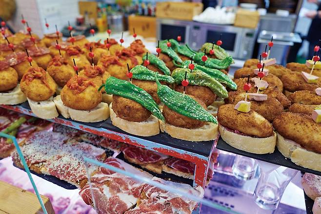 그가 ‘술을 부른다’고 말한 타파스는 쉽게 말해 한 입 거리 음식이다. 시에스타로 질펀하게 낮잠을 즐긴 스패니시들이 저녁 시간까지 허기를 참지 못하고 배를 채우기 위해 먹는 작은 접시 위의 화려한 끼니들.
