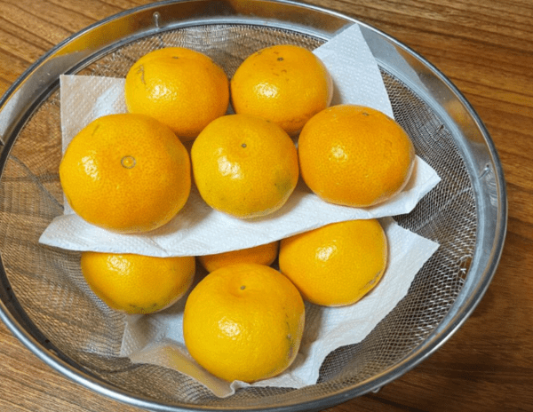 이후 남은 귤들은 키친타월이나 신문지를 이용해 하나씩 감싸주고, 통풍이 잘되는 상자나 바구니에 겹치지 않도록 단층으로 놓는 것이 가장 이상적이다. 이때 바닥에도 키친타월을 한 겹 깔아주면 과도한 수분 흡수에 도움이 된다.