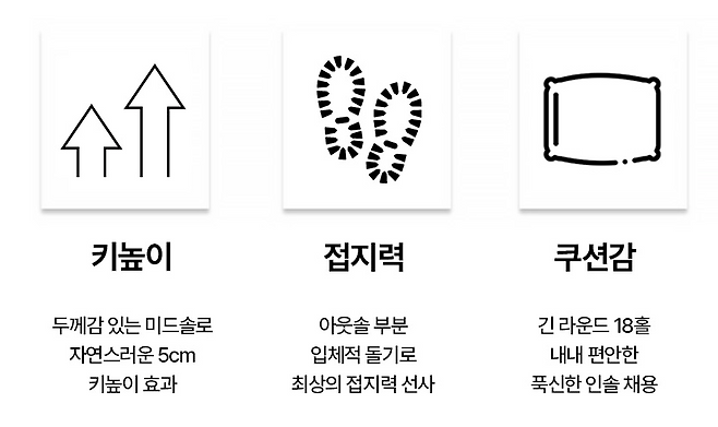 스윙할 때마다 정말 남다른 접지력에 감탄 연발입니다! 동반자들이 다들 어디서 샀냐고 물어볼 정도로 예쁜 디자인까지.. 이런요물, 놓치고 싶지 않네요.