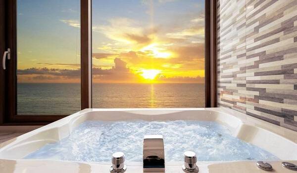 총 4층 규모의 펜션이지만, 1층에서도 깨끗하게 일출 풍경을 감상할 수 있다는 점이 큰 장점인데요. 현재는 1층 객실을 제외한 2, 3, 4층에 각각 한 객실만이 남아있습니다. 남아있는 객실에 모두 스파 시설이 구비되어 있으며, 창 옆으로 소파가 위치해있어 앉거나 반신욕을 즐기며 새해 첫 일출을 감상할 수 있습니다.