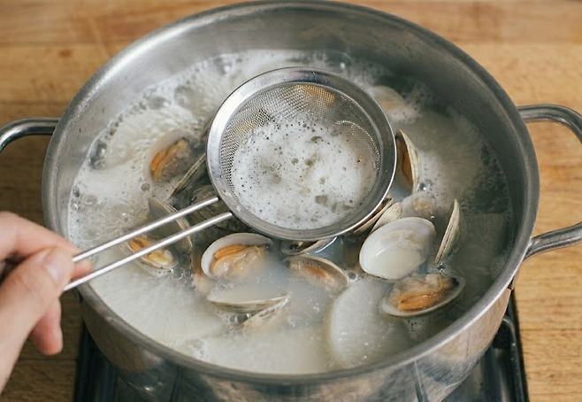 ▶ 같은 재료인데도 식당처럼 시원한 맛이 안 나는 이유는 대부분 ‘해감’과 ‘육수’ 때문입니다