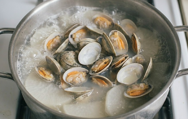 ▶ 같은 재료인데도 식당처럼 시원한 맛이 안 나는 이유는 대부분 ‘해감’과 ‘육수’ 때문입니다