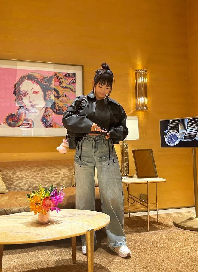 공개한 사진에서 장영란은 허리 라인이 살짝 드러난 블랙 크롭 티셔츠에 크롭 재킷을 걸치고, 와이드 핏 데님 팬츠를 매치한 외출룩으로 트렌디하면서도 힙한 감각을 드러냈다.