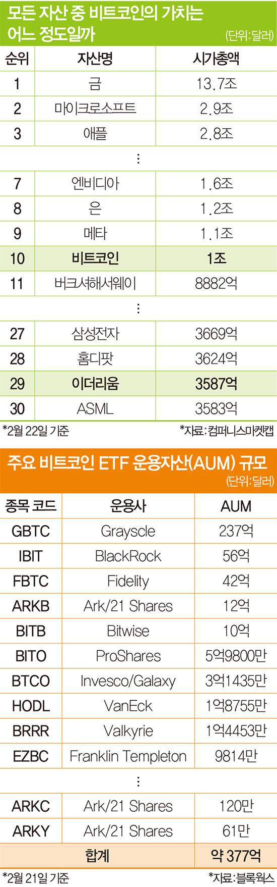 이더리움 시총(약 3500억달러)은 어느덧 전 세계 모든 자산을 통틀어 30위권에 위치하게 됐다. 삼성전자(약 3680억달러)에는 약간 못 미치지만 텐센트나 코스트코, 토요타 같은 글로벌 기업보다 시총이 더 크다.