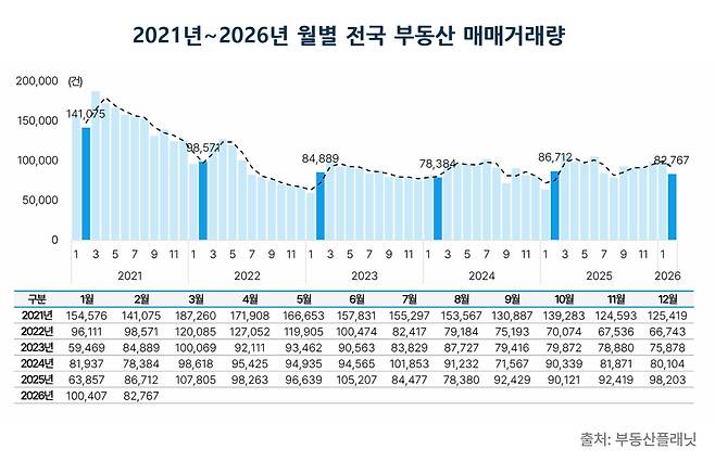 부동산플래닛 “2월 전국 부동산 매매거래량 전월比 17.6%↓, 9개 유형 모두 거래금액 감소”