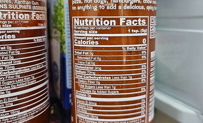 오늘 식탁 위의 스리라차 소스, 그 속의 칼로리 표시를 다시 한번 확인해 보세요!