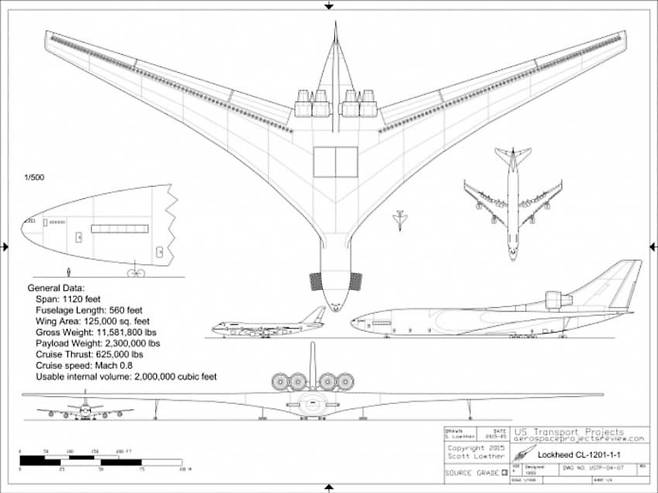 그 이름은 CL-1201. 길이 170m, 날개폭 340m에 중량만 6,000톤에 달하는 이 괴물 항공기는 원자로를 동력으로 최대 41일간 공중에 머물 수 있었고,