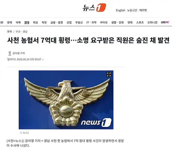 곤명농협은 최근 전산 조회를 통해 농약 거래내역에 이상한 점을 발견하고 담당 직원인 A 씨에게 증빙자료 제출과 소명을 요구했다. 하지만 이후 연락이 끊긴 A 씨는 지난 3일 인근 야산에서 숨진 채 발견됐다.