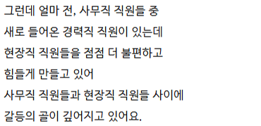 현장직이라고 무시하는 사무직 직원