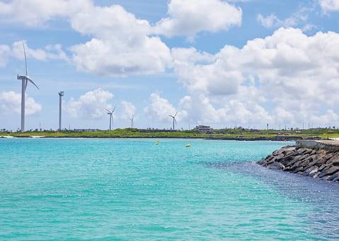 바닷물이 워낙 맑아 햇빛이 쨍쨍한 날이면 에매랄드빛을 띄는 것이 특징인데요. 멀찌감치 풍력발전기가 보여 이국적인 분위기까지 가득 품고 있습니다. 맑은 바다 위 패들보트를 즐기는 사람들도 적지 않습니다. 세기알해변 인근에 스노클링과 오리발 등 물놀이 용품을 대여해주는 업체가 많아 냉온수 샤워시설까지 이용할 수 있어 편리하게 스노클링을 즐길 수 있습니다.