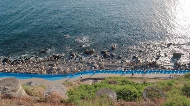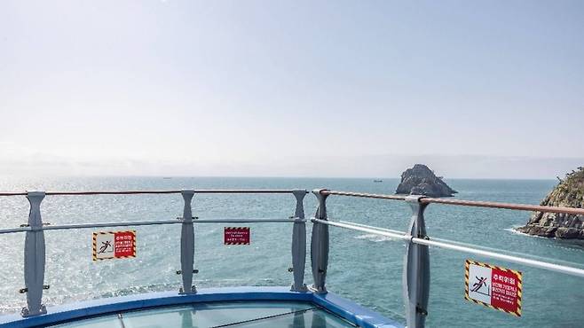 끝없는 바다와 유리 데크 위 스릴 감성 발 아래로 바다가 내려다보이는 투명한 유리 데크, 바람과 파도 소리까지 더해지면 그 자체로 드라마 한 장면.