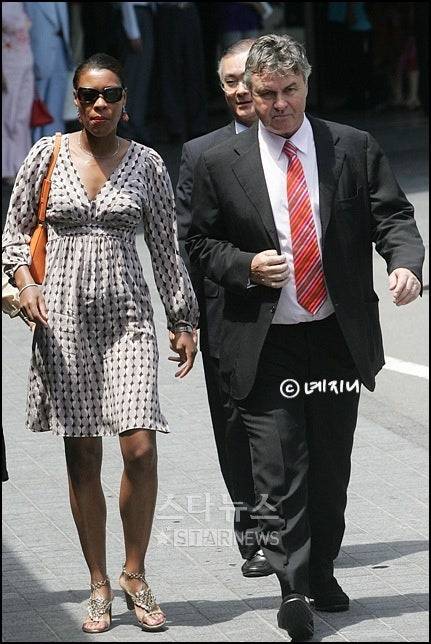 가장 먼저 눈에 띄는 인물은 바로 2002년 월드컵 4강 신화의 주역, 거스 히딩크 감독입니다. 당시 러시아 축구 대표팀 감독을 맡고 있었음에도 오직 박경림의 결혼식을 축하하기 위해 한국까지 한달음에 날아왔다고 합니다. 정석적인 네이비 수트 셋업에 온화한 미소를 띤 모습에서 따뜻한 카리스마가 느껴집니다. 또한, 전 대한축구협회장인 정몽준 회장의 모습도 보였는데요. 박경림이 2003년 뉴욕으로 유학을 떠날 때 직접 추천서를 써주었던 깊은 인연이 있었다고 하네요. 이처럼 분야를 가리지 않는 그녀의 인맥에 다시 한번 놀라게 됩니다.