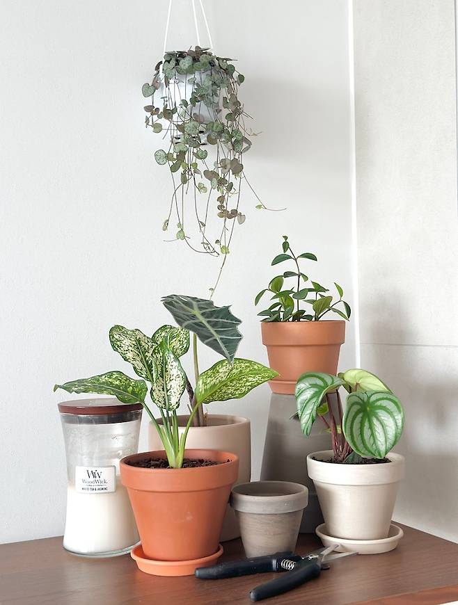 식물이 시선 곳곳에 보이도록 여러가지 화분을 번갈아가면서 두고 있어요.