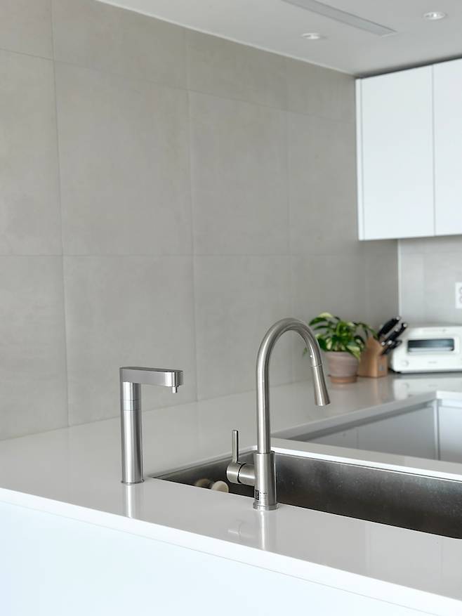 정수기는 엘지 제품의 언더싱크 정수기를 설치했습니다. 싱크대 상판의 공간 차지도 적고 디자인도 심플해서 정수기 구입하려는 분들께 꼭 추천드리고 싶어요.