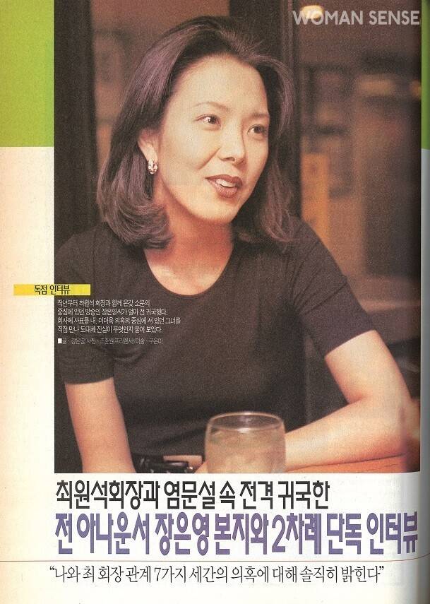최원석 전 동아그룹 회장은 미녀 방송인들과의 결혼으로 화제를 모았으며, 그중 마지막 배우자는 27세 연하 장은영 전 아나운서였다. 장 씨는 <우먼센스> 단독 인터뷰에서 결혼 전후의 진실을 털어놨고, 언약식, 결혼, 이혼, 재혼까지 특종 보도는 이어졌다. 최 회장은 2023년 향년 80세로 세상을 떠났고, 장 씨는 동갑내기 사업가와 재혼했다.