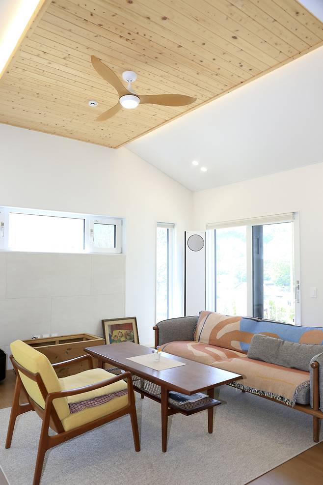 주택은 자연을 향해 거의 열려있다고 봐도 될 것이다. 주택설계의 첫 번째 조건은 서북쪽의 천주산을 조망할 수 있도록 하는 것이었다. 다음으로 중요한 것은 채광 확보였다. 이를 위해 창을 최대한 많이 냈다. 시공업체 대표는 “지금까지 지은 집 중 창문 수가 가장 많다.”고 전했다.