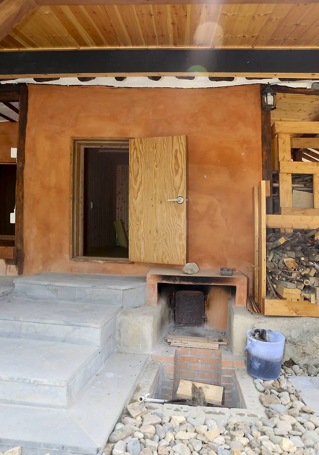 목구조와 서까래를 최대한 보존했으며 허물어진 벽체는 보강 후 황토 미장으로 마감했다. 아궁이를 갖춘 구들방은 내부 단열작업 후 천장과 벽면은 편백나무 루바로, 바닥은 전통 기름 한지로 시공했다. 다른 방 하나는 벽면을 더글라스 합판으로 마감하고 천장은 구들방과 마찬가지로 편백나무 루바를 적용했다.