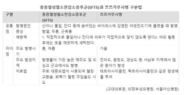 쯔즈가무시와는 달리 살인진드기라고도 불리는 작은소참진드기에 의해 전염되는 SFTS는 지난 2011년 중국에서 처음으로 환자 감염이 확인된 신종 전염성 질병이다. 주로 SFTS를 유발하는 분야바이러스에 감염된 작은소참진드기가 사람을 물 때 전염되기 때문에 진드기가 활동하는 봄부터 가을까지 주로 발병한다.