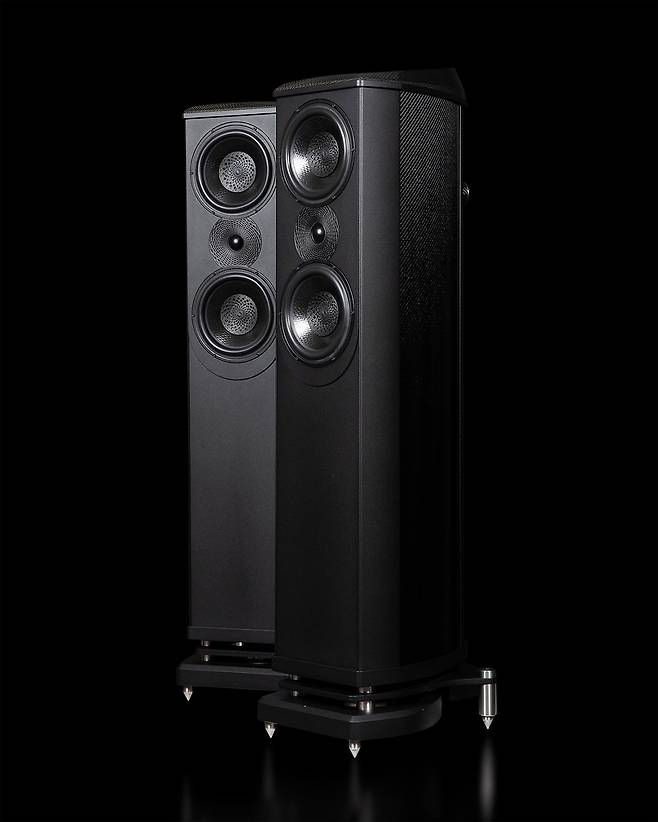 업그레이드된 드라이버 기술도 괄목할 만하다. 먼저 미드레인지와 우퍼의 더스트 캡과 트위터의 페이스 플레이트에 독특한 기하학적인 문양이 새겨 있는 것이 눈에 띈다. 이는 플래그십인 에미넌스에 투입된 것과 동일하게 피보나치 요소를 적용한 것으로, 카본 파이버와 나일론 합성물을 사용해 3D 프린팅으로 만들어졌다. 이를 통해 주파수 응답의 정확성과 왜곡 감소, 평탄한 주파수 응답과 초광대역 분산이라는 효과를 거둘 수 있었다고 한다. 또한 진동판도 실크-탄소 섬유 복합 돔, 아이소택틱 폴리프로필렌 콘이라는 새로운 소재를 사용하고 있다. 미드레인지가 크로스오버 없이 앰프에 직접 연결되는 것도 주목할 만하다. 이 역시 플래그십의 설계와 동일한데, 종래 스피커가 드라이버 모두 크로스오버를 통해 소리를 울리는 것과 달리 시청기는 미드레인지가 앰프와 직접 연결, 크로스오버 설계가 단순화되어 가장 짧고 순수한 신호 경로를 생성한다. 아마 이 기술력이 시청기의 가장 큰 사운드 특성이 될 것이다. 마지막으로 ACT 스피커 시리즈 중 최초로 아이소배릭 드라이브 시스템을 장착했는데, CNC로 정밀 가공한 세 부분으로 구성된 묵직한 금속 하단부에 수납되어 있으며, 공개된 사진에서 그 실체를 볼 수 있다.