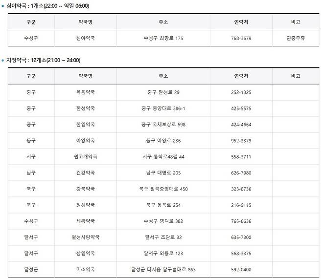 κ²μ ν€μλ νμ©: "λꡬ μ€κ΅¬ μΌμμΌ μ½κ΅" , "λꡬ κ²½μ° 24μκ° μ½κ΅" κ³Ό κ°μ΄ ꡬ체μ μΈ μ§μλͺ μ ν¬ν¨νλ©΄ λμ± μ νν κ²μ κ²°κ³Όλ₯Ό μ»μ μ μμ΅λλ€.