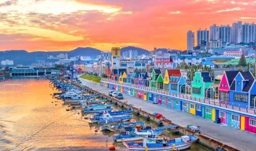 이탈리아 베네치아를 연상케 하는 알록달록한 포구의 모습으로 '부네치아'라는 별명으로 불리는 부산 장림포구입니다. 항구 한 켠 정박해있는 배를 따라 조성된 길의 건물 외벽과 조형물들이 알록달록한 색감의 벽화로 가득 채워져 청량한 분위기를 가득 품고 있는데요.