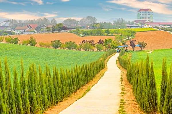 여름철 해바라기가 만발해 환상적인 풍경을 선사하는 안성 팜랜드입니다. 해바라기밭 근처로 이탈리아의 토스카나를 연상케 하는 블루 에로우 길이 국내 이국적인 여행지로 알려지게 된 계기이죠. 평탄한 산책로 좌우에 길게 뻗은 블루에로우 나무들이 잠시 이탈리아에 온 듯한 착각까지 불러일으킵니다.