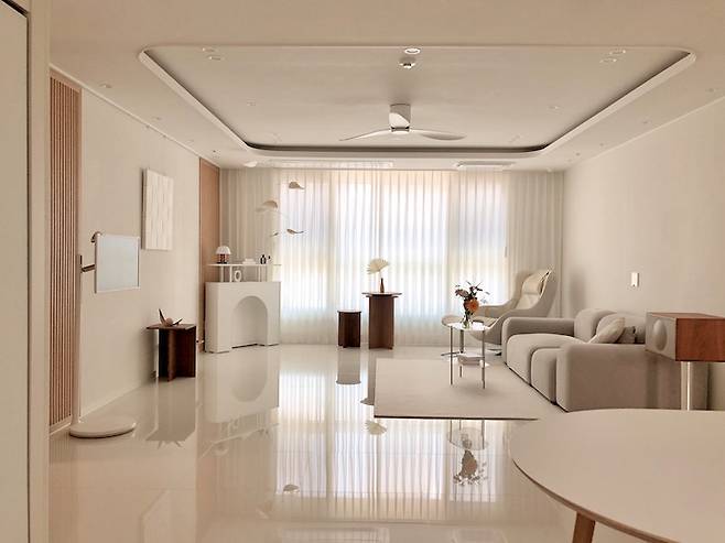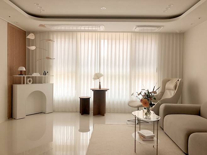 몸을 사용하여 일을 하는 남편이 허리가 자주 아파서 이사 오면 꼭 해주고 싶었던 안마 의자를 들였어요. 인테리어에 방해가 될까 망설이던 남편이었지만 딱히 인테리어에도 방해되지 않고 너무 예쁘게 나온 안마 의자라 오히려 더 예쁘더라고요.