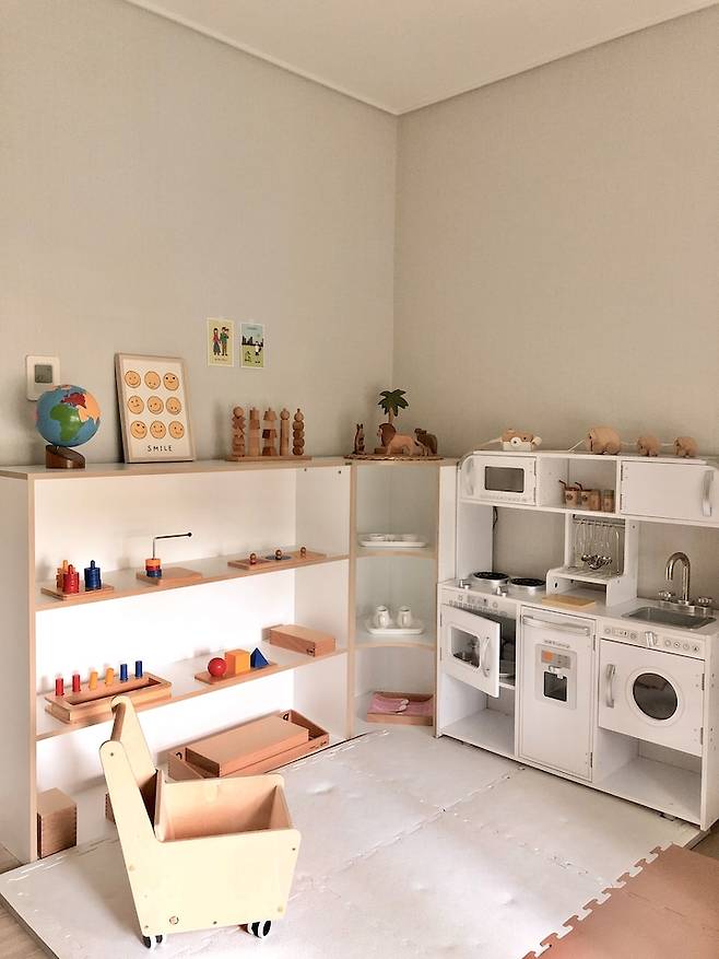 소근육 발달을 중요시 여겨 엄마표 몬테소리 수업을 집에서 조금씩 하는 중이에요.