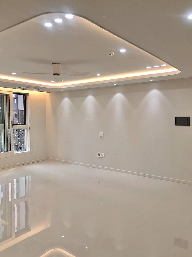 사전 점검 때 찍어두었던 사진이에요. 신축 아파트임에도 불구하고 저는 아트윌이 너무 마음에 들지 않았어요. 그래도 새 아파트라서 아트월 철거를 조금 고민하기도 했는데, 남편이 거실만 부분 인테리어 하자는 의견을 내줘서 무조건 일 순위는 아트월이 없는 집으로 만들 자였어요.