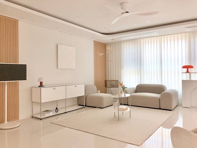 지금 집이 평형대에 비해 거실이 넓게 빠진 편인데, 소파가 거실에 비해 너무 작아 추가를 해야 하나 많이 고민했어요. 신혼 때 큰 소파를 사서 이리저리 구조를 변경할 수 없었던 기억이 나서 작은 소파를 구매했는데 소파가 거실의 중심이 되지 않아 추가 하지 않은 걸 잘한 거 같아요.