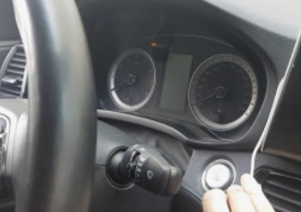 브레이크를 밟지 않은 상태에서, 시동 버튼을 한번 짧게 눌러 차량의 전원(ACC 상태)을 켭니다.