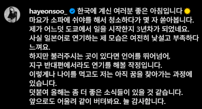 한동안 소식이 없었던 배우 하연수가 최근 일본 활동과 관련한 근황을 전하며 주목을 받고 있습니다.