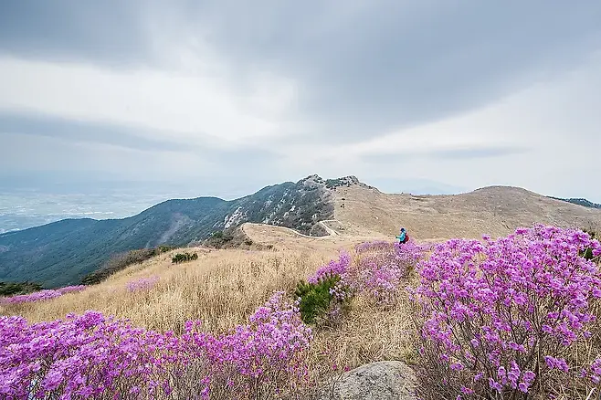 경남 창녕의 화왕산은 가을억새가 유명하지만, 봄에 찾아가면 또 다른 감동을 만끽한다. 산 전체가 연분홍 진달래로 물드는 때면, 6.5km에 이르는 긴 능선 코스가 끝없이 이어지는 꽃길로 변신한다.