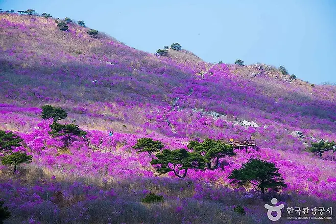 대구 지역을 대표하는 명산 비슬산은 봄이 되면 유난히 많은 인파를 불러모은다. 해발 1,000m 고지에 펼쳐진 100만㎡ 규모의 진달래 군락은 전국에서도 손에 꼽히는 스케일로, 분홍빛 물결이 거대한 카펫처럼 펼쳐진다.