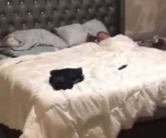 알고 보니 사랑스러운 아들이 강아지와 함께 침대에 나란히 누워 둘만의 대화를 나누고 있었던 것입니다.