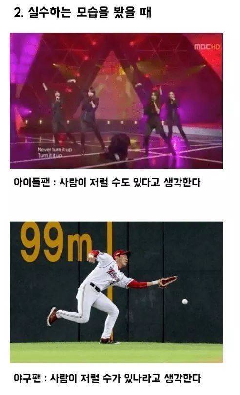 야구팬과 아이돌팬의 가장 큰 차이는?