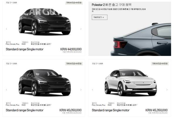 폴스타코리아의 주력 모델인 폴스타2가 돌풍을 일으키고 있다. 4390만원 부터 시작하는 신규 트림이 그 주인공이다. 정부 보조금 지급 기준을 맞추지 못하자 자체적으로 400만원 보조금을 지급하면서 실구입가 3990만원이라는 파격적인 금액으로 관심을 모으며 한때 구입 관련 홈페이지가 다운되기도 했다.