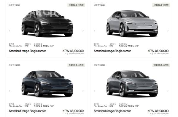 더구나 자체 보조금 400만원 지급해 계산상 실 구입가는 3990만원이다. 이 가격대는 국산 전기 소형 SUV 현대차 코나, 기아 EV3와 비슷하거나 오히려 저렴하다. 이들 차량에 어느 정도 옵션을 넣으면 실 구입가격이 4000만원이 넘어간다. 실제로 이 가격에 구입이 가능한지 폴스타 홈페이지를 방문했다.