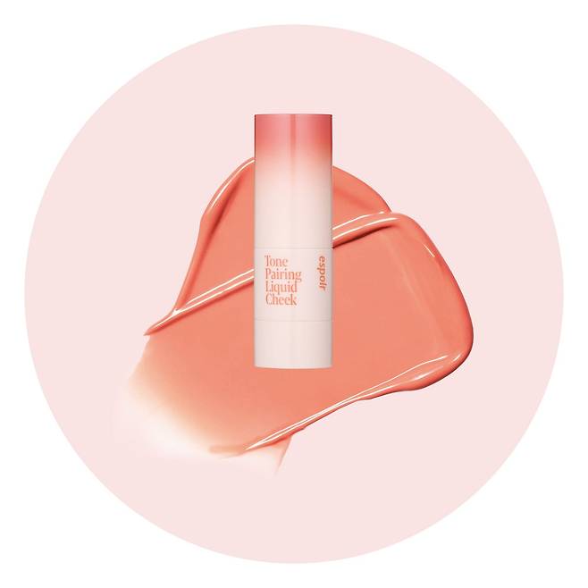 에스쁘아 톤 페어링 리퀴드 치크 세레나데 퍼시몬 쫀쫀한 세럼 텍스처로 속부터 탱글하게 차오르는 속광 치크 메이크업을 연출한다. 8ml 2만2천원.
