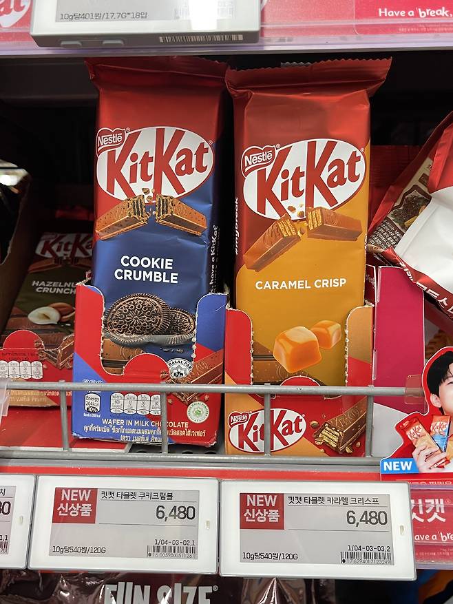 기존 킷캣의 깔끔한 웨이퍼 식감 위에 “쿠키 크럼블”의 진한 풍미가 더해져, 일반 킷캣보다 훨씬 묵직하고 만족감 높은 맛이에요.