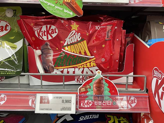 크리스마스 시즌 한정으로 나온 산타 모양의 킷캣으로 부드러운 밀크초콜릿으로 코팅된 웨이퍼가 기본이에요.
