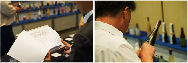 몇 시간에 걸친 관능 평가 이후 술병과 함께 출품내역서가 책상 위에 올라왔다. 창의성·상품성·디자인 등의 항목에 점수를 매기는 2차 평가 단계다. 평가위원은 출품내역서 속 개발 취지, 제조 과정 등을 살피며 재차 평가에 나섰다. 맥주처럼 캔에 담긴 술이 있는가 하면 위스키처럼 고급스러운 병에 담긴 술, 요구르트처럼 숟가락으로 떠먹는 술 등 형태의 제약을 벗어난 출품작이 시선을 끌었다.