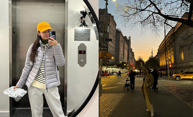 사진 속 안소희는 줄무늬 니트를 입고 연보라빛 경량패딩과 조거 팬츠, 노란 캡모자를 써서 내추럴하면서 데일리한 패션을 선보였다. 또 다른 사진에서는 브라운 트렌치코트를 입고 뉴욕의 밤거리를 즐기는 모습을 공개했다.